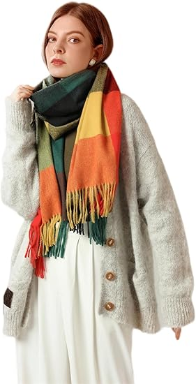 【Special Design and Material】 This 71" * 27.5" women's plaid scarf is made of different sizes of plaids delicately stitched together in a variety of styles for you to mix and match. It is a scarf wraps with tassel for a stylish and designer look.The women scarves is made of a soft, comfortable, lightweight and beautiful fabric, made from high quality 100% faux cashmere.The women's neck warmer scarf is super soft to the touch, lightweight and won't fade easily.