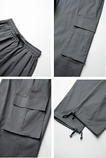Features: solid color, 6 pockets for large storage capacity, drawstring waistband, relaxed fit straight cargo pants