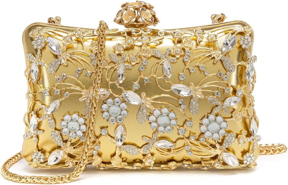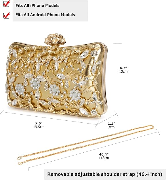 【3-in-1 STYLE】 Our Evening Clutch Bags come with a detachable chain, so you can carry the gold clutch in three ways: Clutch/Handbags/shoulder, which gives you more options and matches perfectly with different outfits.