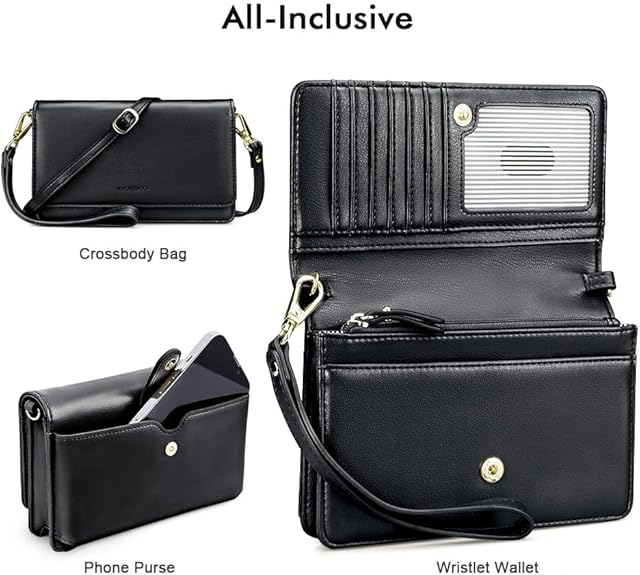Túi đeo chéo nuoku dành cho nữ đựng điện thoại di động, ví nhỏ có khe cắm thẻ tín dụng, ví da nhẹ đeo cổ tay