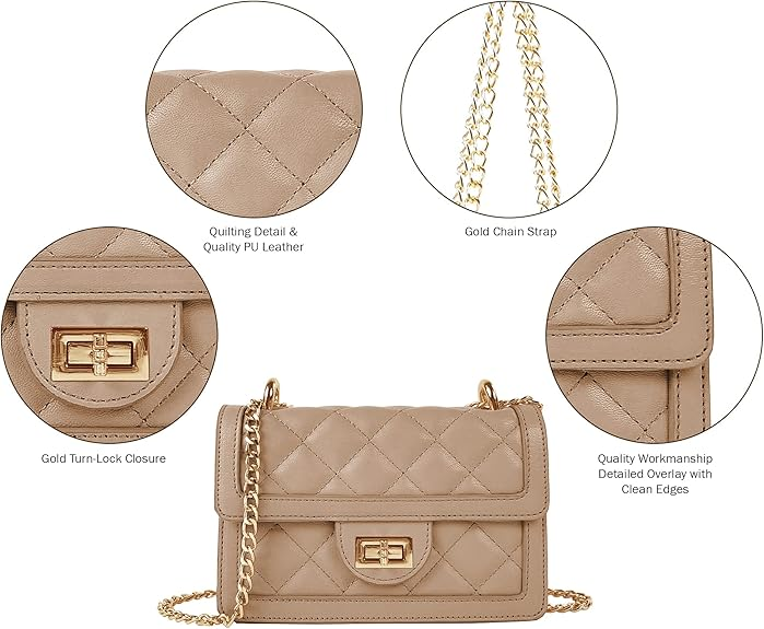 • THỜI TRANG & CHỨC NĂNG: Chiếc túi đeo chéo thời trang này có thiết kế bên ngoài chần bông cổ điển và dây đeo chéo màu vàng. Đây là chiếc túi lý tưởng để sử dụng trong văn phòng, mua sắm, du lịch, tiệc tùng, kỳ nghỉ hoặc bất kỳ dịp nào hàng ngày - hoàn hảo cho cả ngày và đêm! Cho dù bạn là nhân viên văn phòng, sinh viên, du khách, bạn sẽ thích chiếc túi dễ thương này. Dễ dàng mang theo và nhẹ khi đi du lịch, chiếc túi thanh lịch này rất thời trang.
