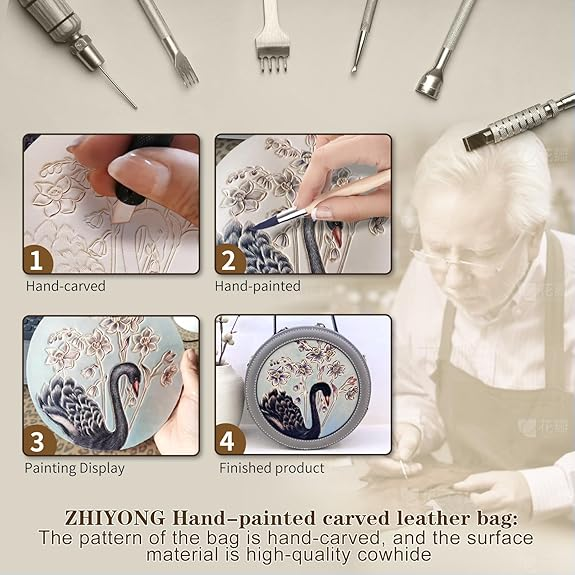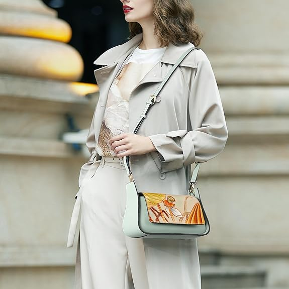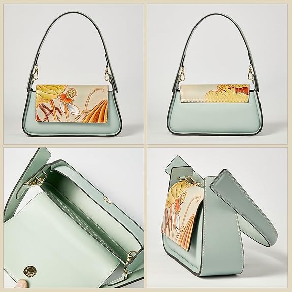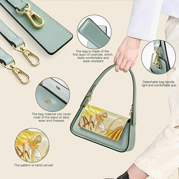 Túi đeo vai bằng da thật dành cho nữ Túi cầm tay bằng da chạm khắc thủ công Túi đeo vai dễ thương Hob