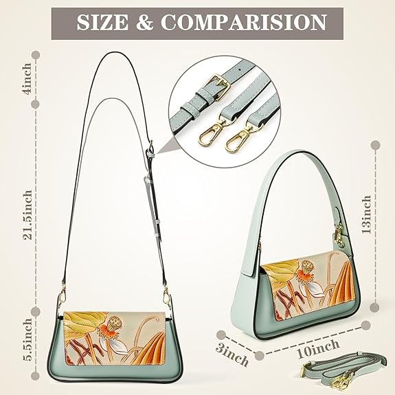 • Nhiều kiểu mang: Túi xách da thuần chay dành cho phụ nữ có kích thước (D) 10" x (R) 3" x (C) 13". Dây đeo vai có kích thước 27-31 inch. Có 2 dây đeo có thể điều chỉnh và tháo rời, có thể sử dụng làm túi đeo chéo hoặc túi đeo vai