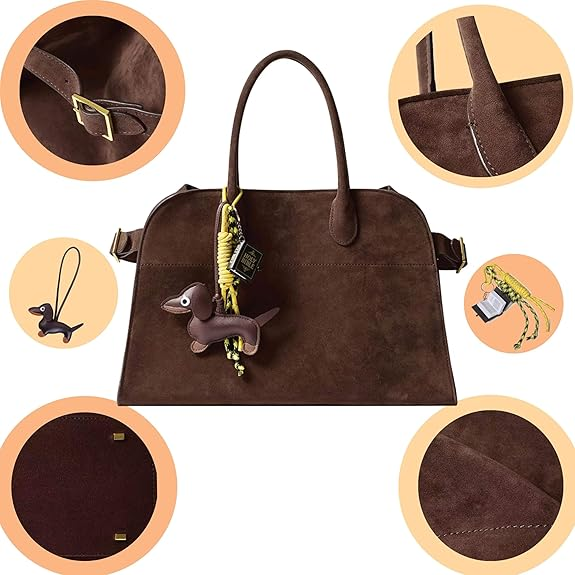 Túi Tote Da Lộn Sang Trọng May Thủ Công Hoàn Toàn, Túi HOBO, Ví Nữ, Túi Xách Du Lịch Rộng Rãi Cho Nữ, Nâu Đậm, Kèm Theo Một Quyển Kinh Thánh Nhỏ Và Phụ Kiện Túi Hình Chú Chó Dễ Thương