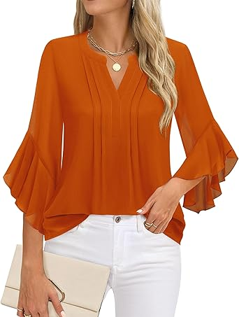 Timeson Women's 3/4 Sleeve Tops Dressy Casual Business Work Blouses Chiffon Office Shirts