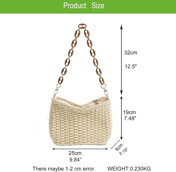 Small Straw Bag:L x W x H: 9.8 x3.1 x7.2 inch(not include strap), which is perfect for holding cellphones, wallet, sunglasses, cosmetics, folding umbrella and other personal items.