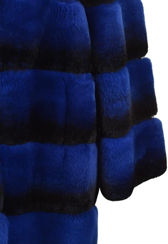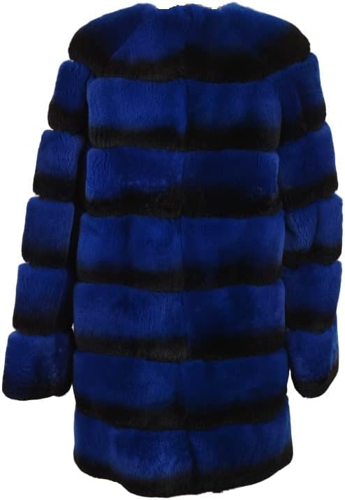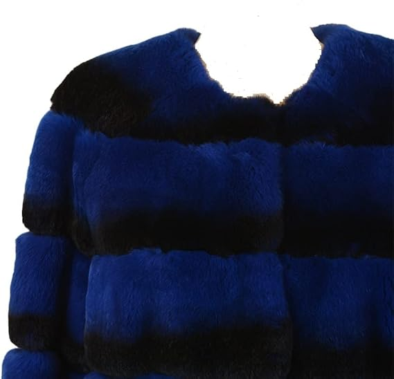 Woman Night Blue Black Stripped Real Fur Coat