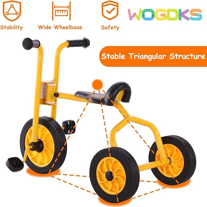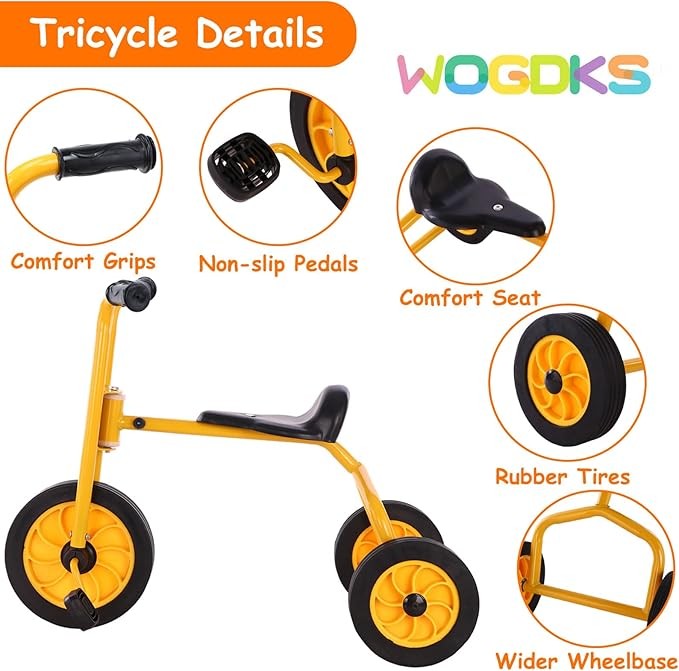 Thoughtful Design: Equipped with fully enclosed wheels, the child's feet do not get stuck when riding; The 3 wheel tricycle's stable triangular structure design and widened wheelbase prevents rollover; Rounded edge design without burrs