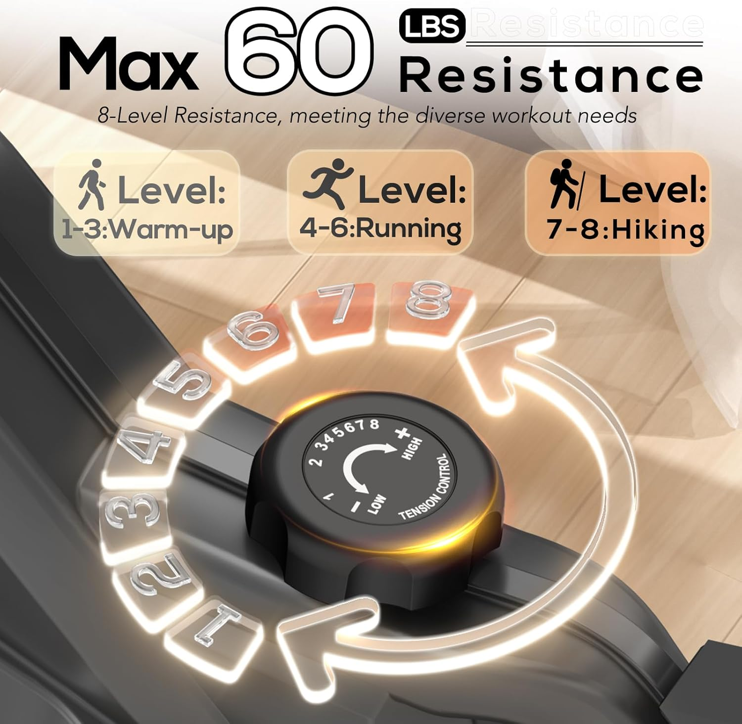 8 mức điều chỉnh lực kháng từ - Xe đạp tập thể dục nằm với 8 nam châm. Công nghệ tắt tiếng của hệ thống từ trở kép cho xe đạp nằm mang đến cho bạn trải nghiệm tập luyện yên tĩnh hơn.