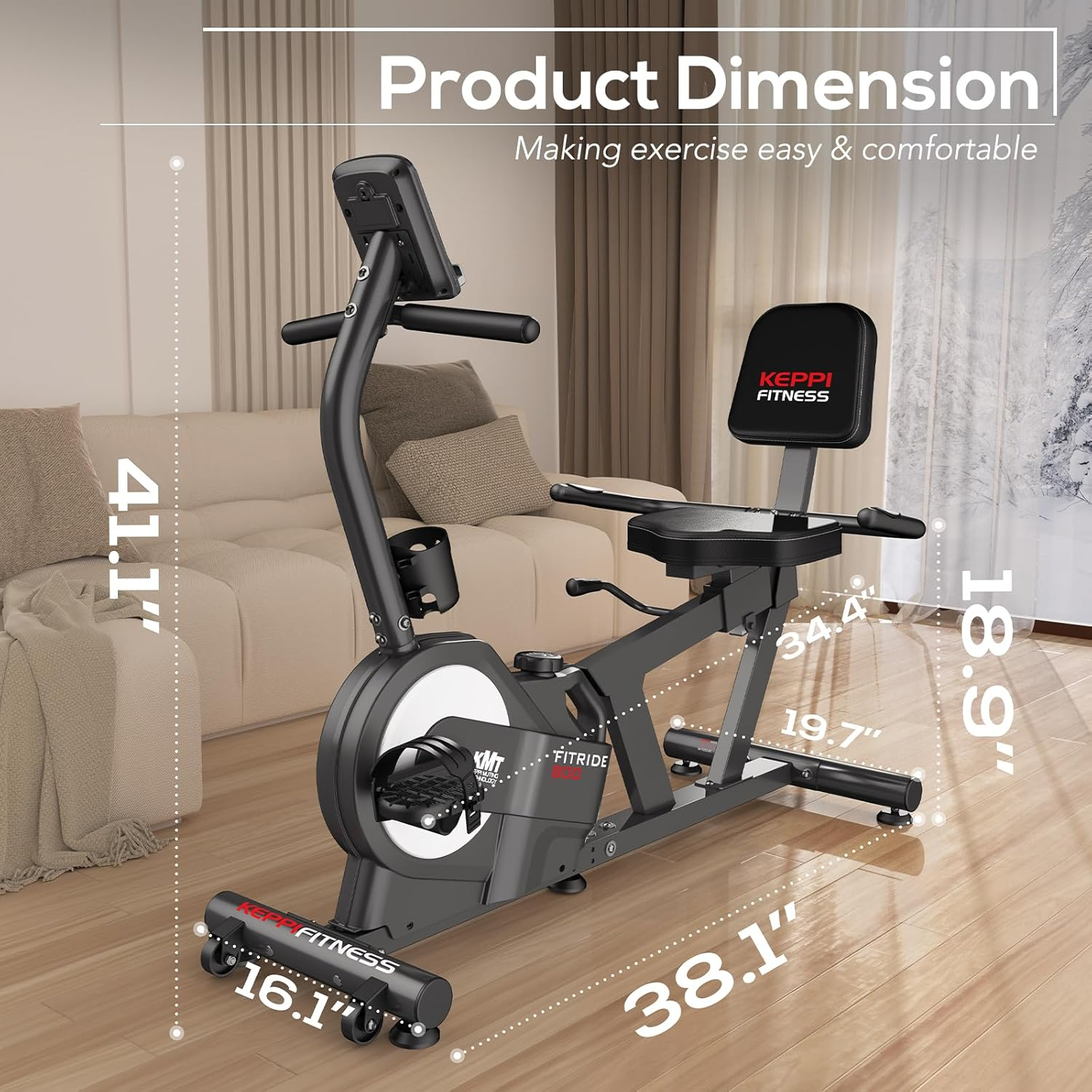 Xe đạp tập thể dục nằm KeppiFitness, Xe đạp nằm cho người lớn có lực cản từ, Xe đạp tập thể dục tại nhà sức chứa 380LB, Xe đạp tập thể dục cố định cho người cao tuổi có cảm biến nhịp tim